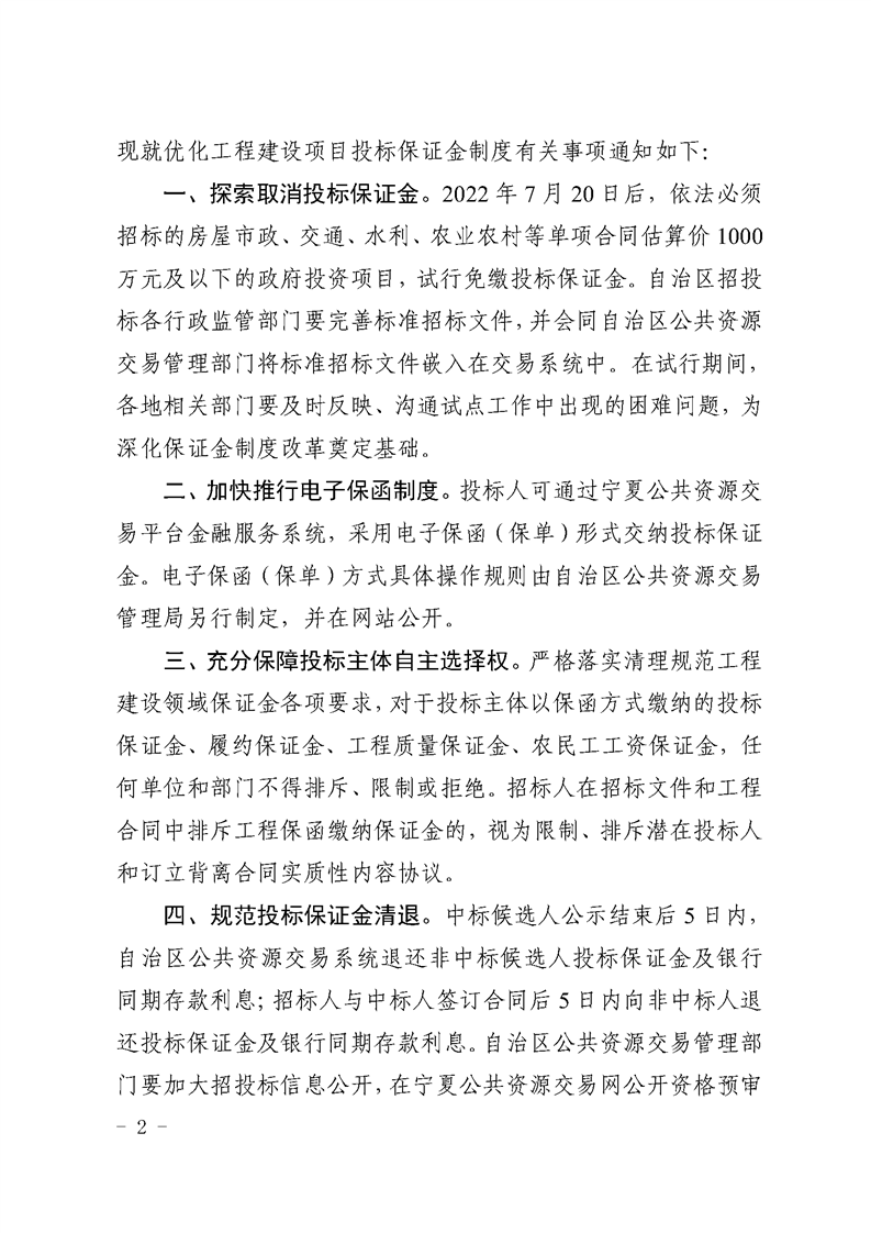关于优化工程建设投标保证金制度的通知