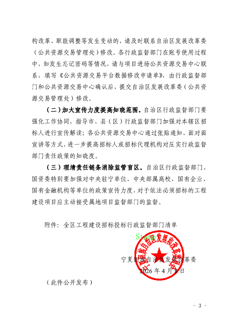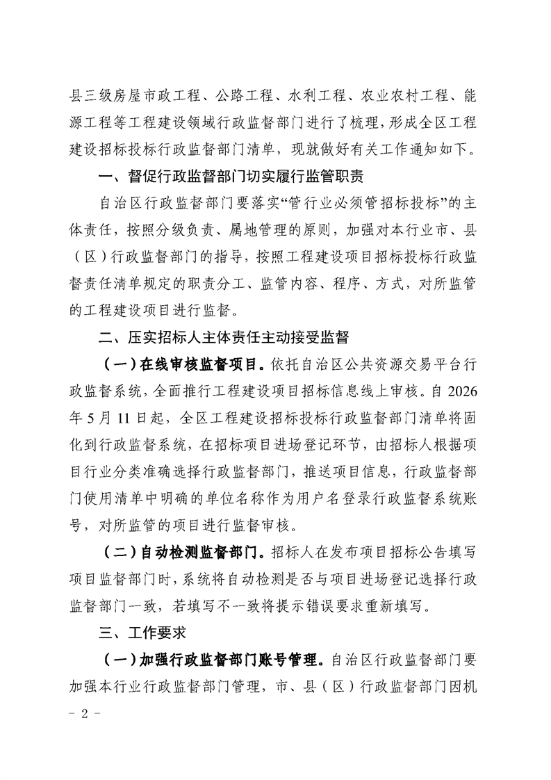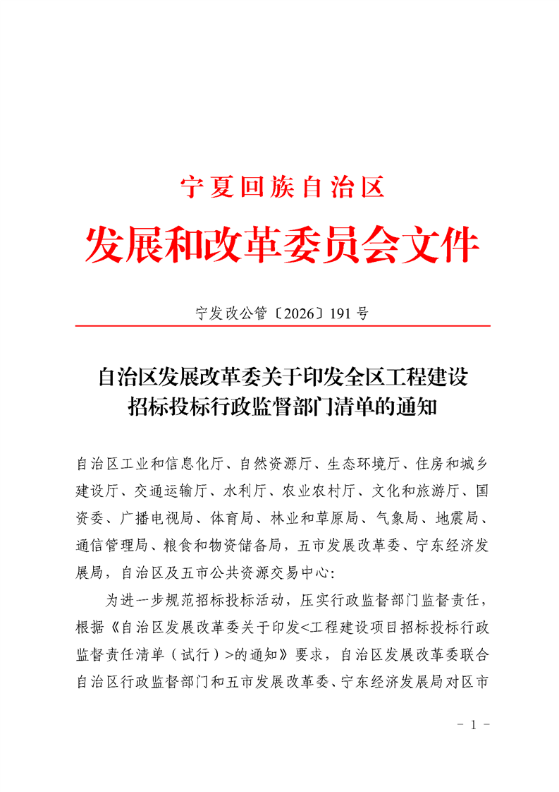 自治区发展改革委关于印发全区工程建设招标投标行政监督部门清单的通知