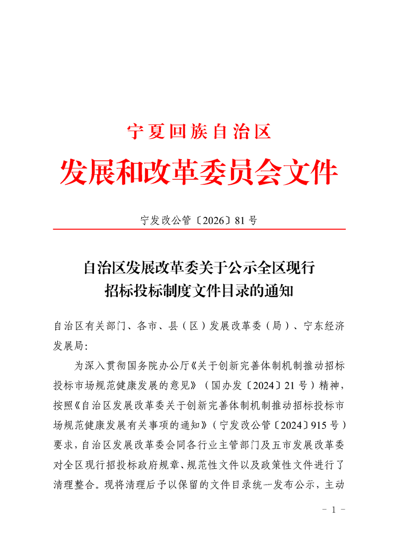 ![]() ![]() 宁夏回族自治区现行招标投标制度文件目录(截止2026年1月) |